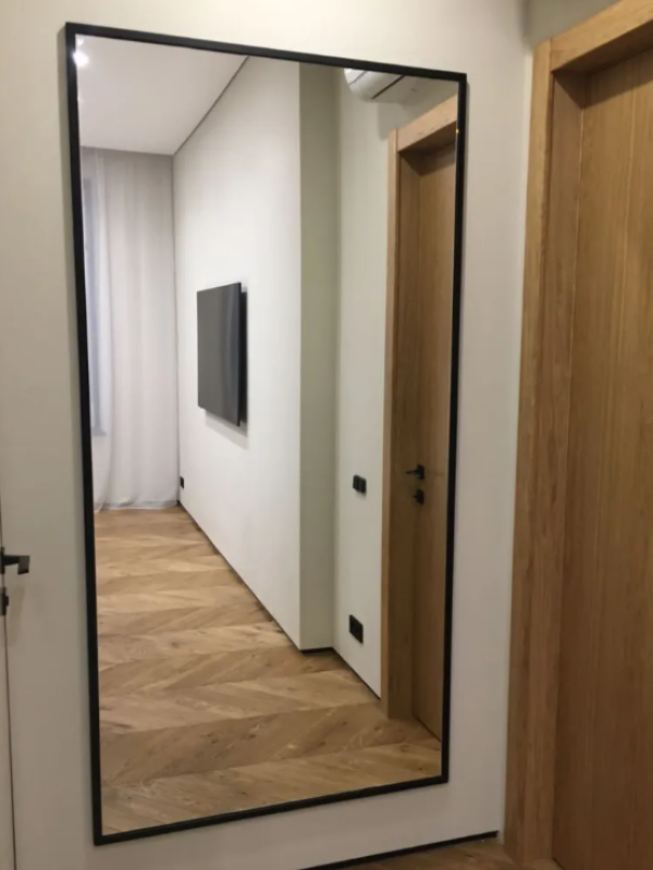 Зеркало «Parallax». Артикул GMZ-8-2-1/2/3 Большое зеркало в полный рост, которое с уверенностью можно назвать парадным. Простая прямоугольная форма без каких-либо излишеств позволяет использовать это зеркало в любых помещениях, оформленных в каких угодно стилях. Оно способно кардинально преображать пространство визуально расширяя его рамки и наполняя светом. Рама изготовлена из прочного металла, придаёт конструкции устойчивость и надёжность. Зеркальное полотно высокого качества, является продукцией известного бельгийского бренда AGC. Зеркало можно использовать как в напольном, так и настенном вариантах. Для крепежа на стену на обратной стороне рамы имеются крепёжные элементы.Характеристики:– габаритные размеры – 2000х1000х20 мм, металлический профиль – квадрат 20х20 мм;